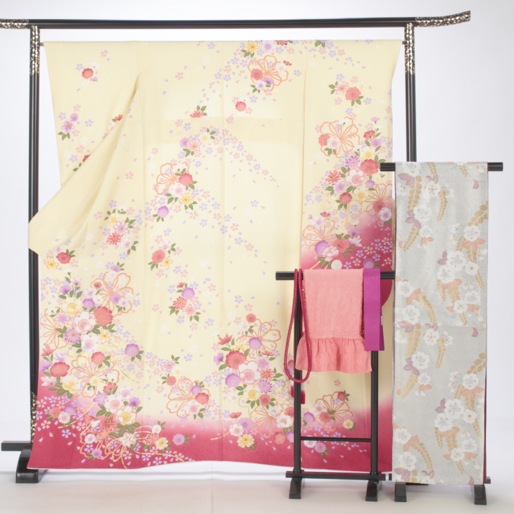 「振袖のみ」「振袖と帯のみ」など、セット内容をばらして販売・レンタルすることはできません。また、「別の帯締めに変更したい」などセット内容の変更をすることもできません。