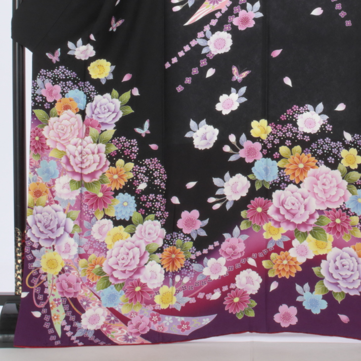 振袖 購入 フルセット Lサイズ 成人式 着物 【黒系】【中古】【状態:A】【f0214322】