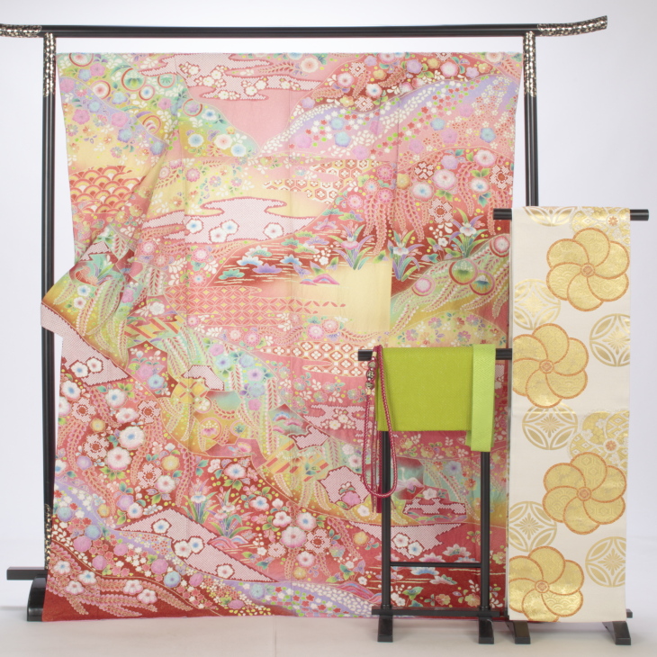 未婚女性の第一礼装としてお正月や成人式、結婚式、結納、パーティー、など華やかな場にお使い頂ける振袖セットでございます。当店の豊富な在庫から選別し、コーディネート致しました。