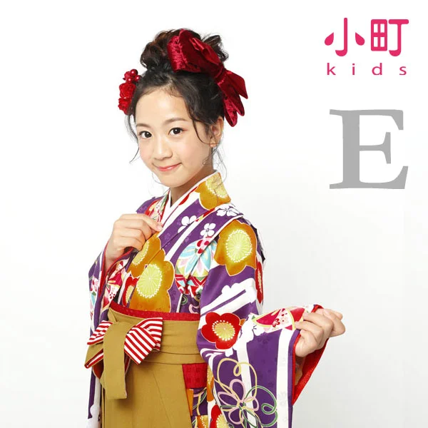 E:(着物)紫色、(袴)からし色