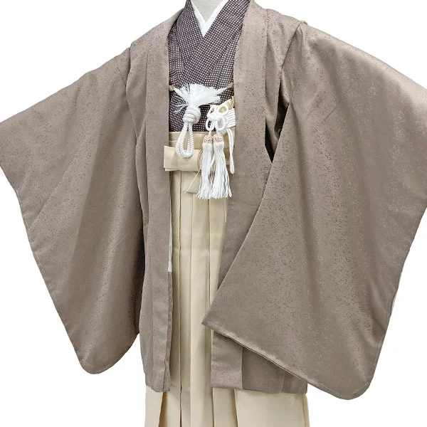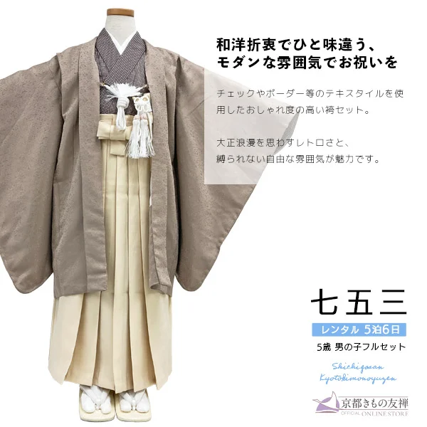 【レンタル】七五三 男の子 5歳 羽織袴セット モダン モカ ブラウン ベージュ こげ茶 チェック 着物【5泊6日】