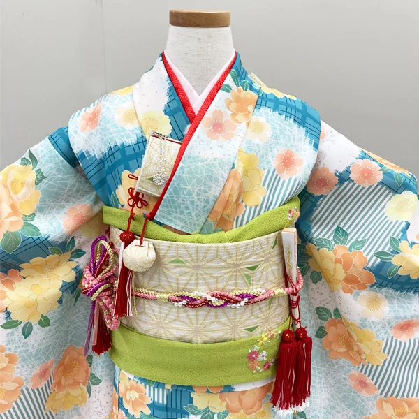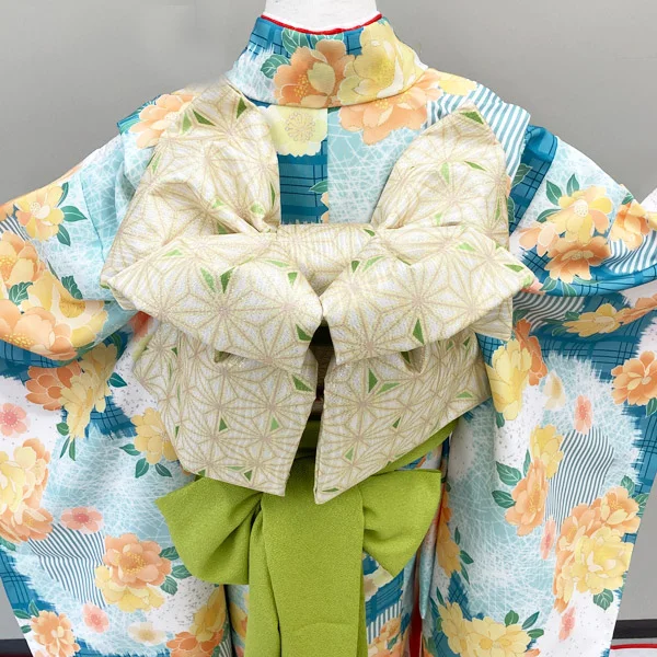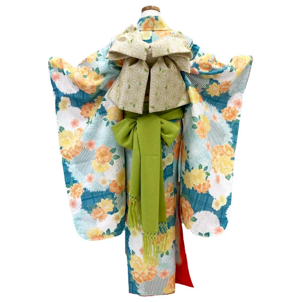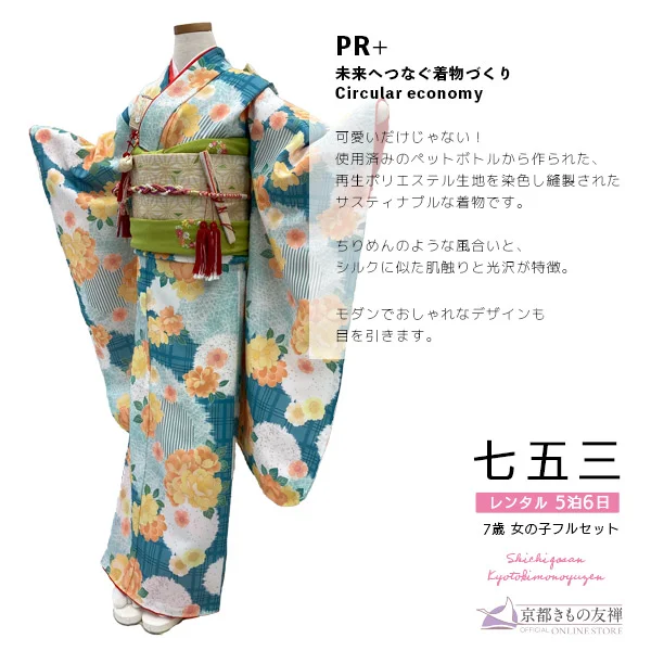 【レンタル】七五三 女の子 7歳 着物セット PR+ natural/グリーン 着物【5泊6日】